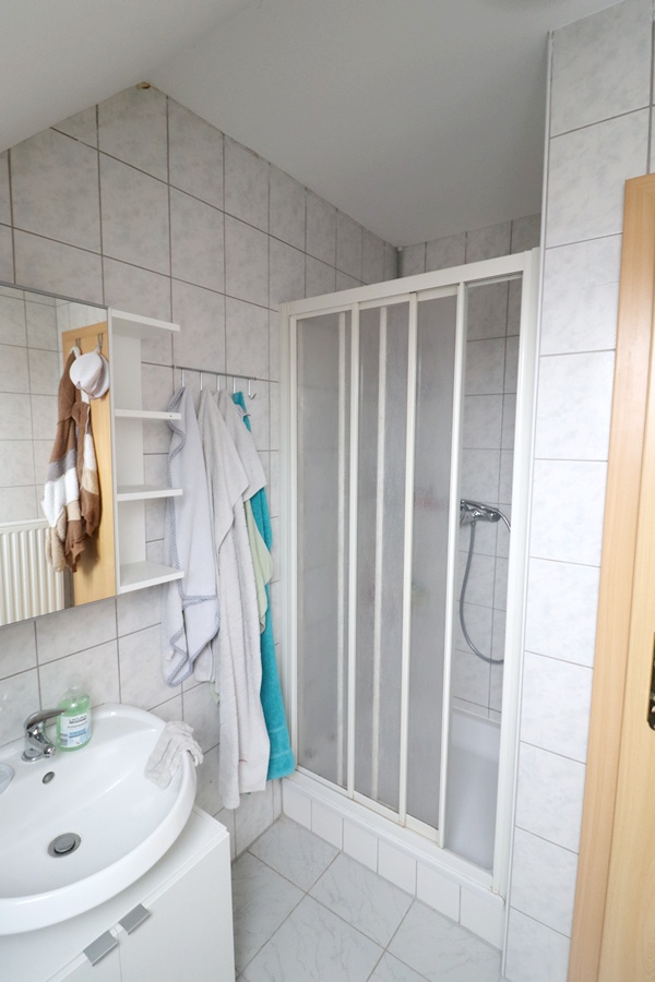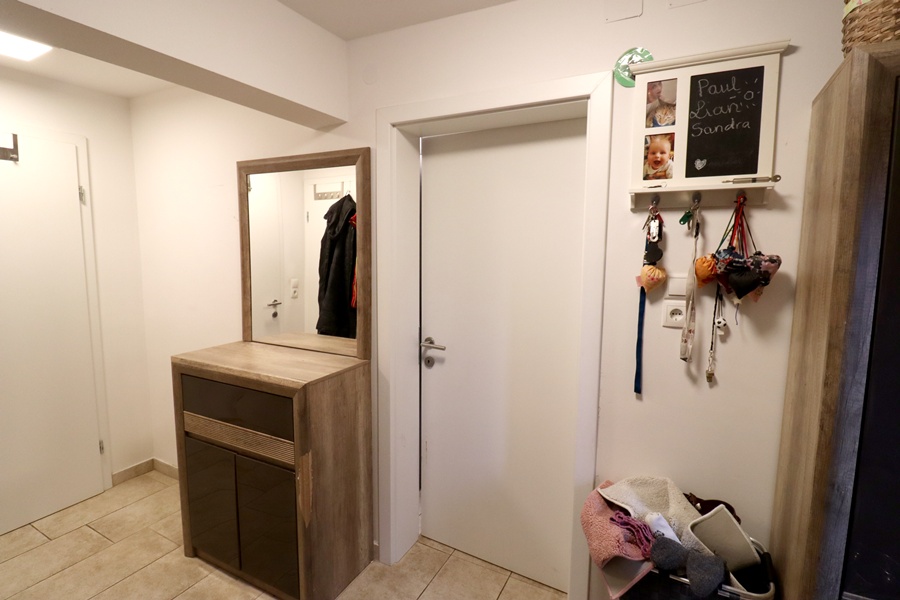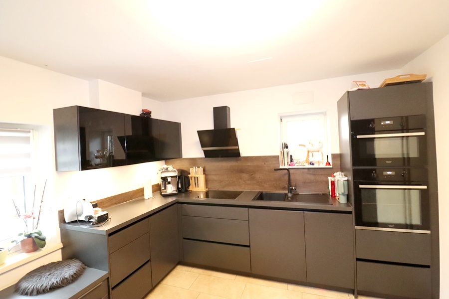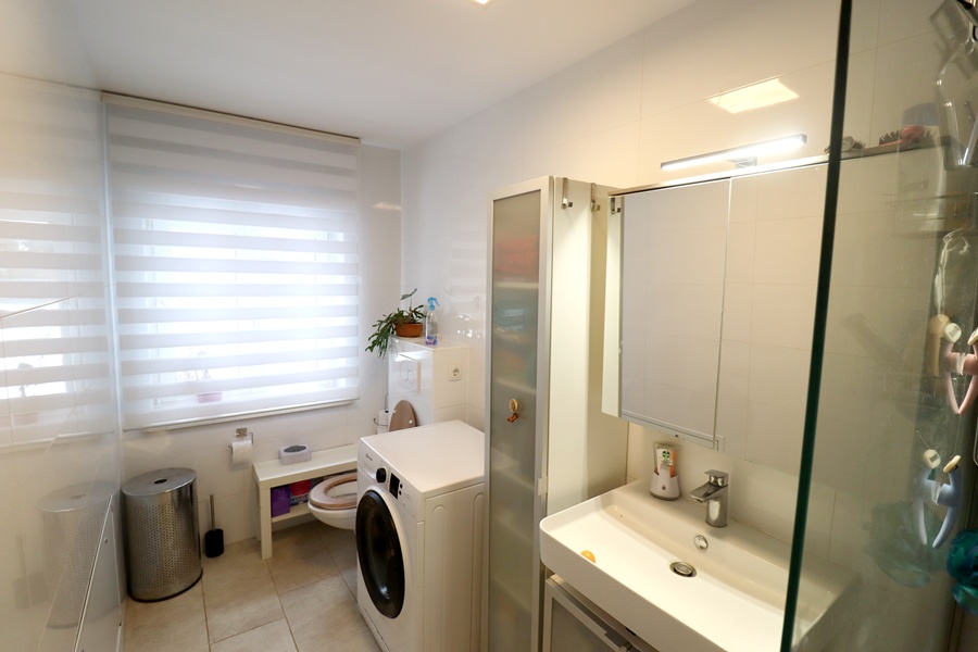 Großzügige, moderne Küche, familienfreundlicher Wohnbereich, Wohnzimmer, Vorraum/Eingangsbereich, Technikraum sowie Badezimmer mit großer Dusche und WC. - Obergeschoss: