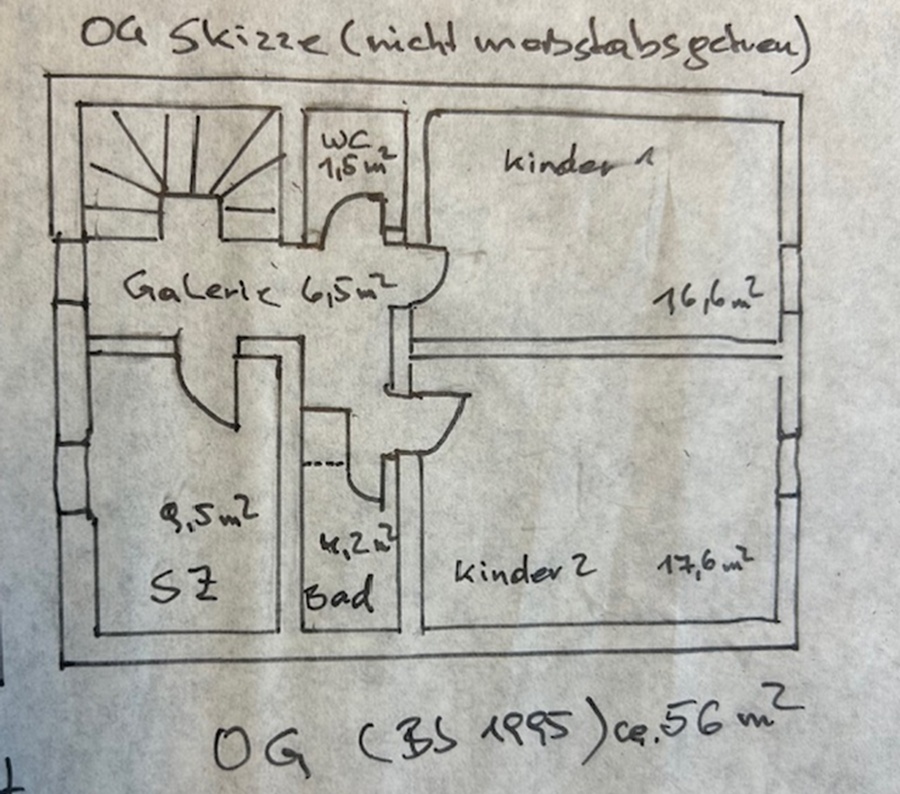 Galerie, Schlafzimmer, zwei Kinderzimmer, weiteres Badezimmer bzw. WC.