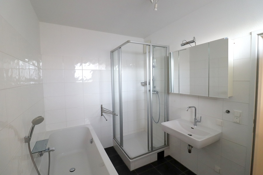 Das Badezimmer verfügt über ein Fenster, eine Badewanne sowie eine Dusche. Das WC ist separat ausgeführt. Die Wohnung wird nach der Erstvermietung neu ausgemalt übergeben und ist ab sofort beziehbar.